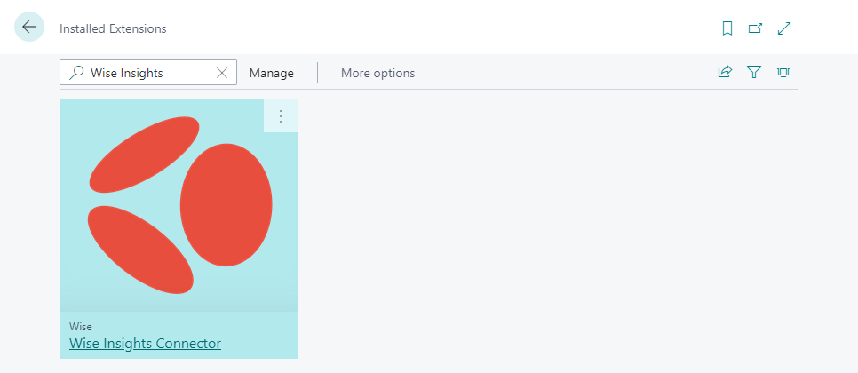 When the Wise Insights Connector has been installed it should be visible in the Extension Management windows