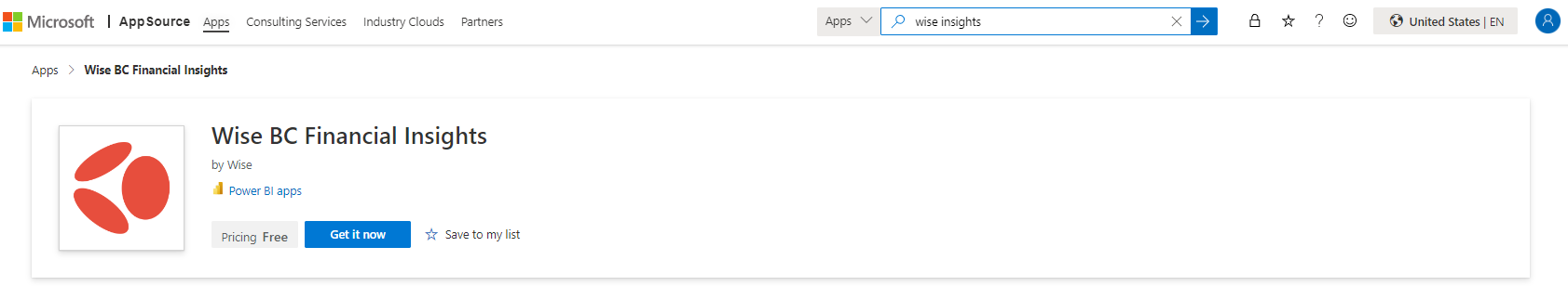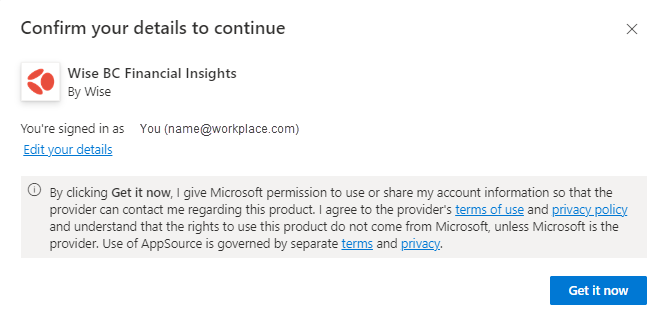 Open the Wise Insights Connector in AppSource