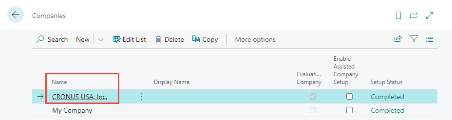Enter the Company name (not display name) parameter